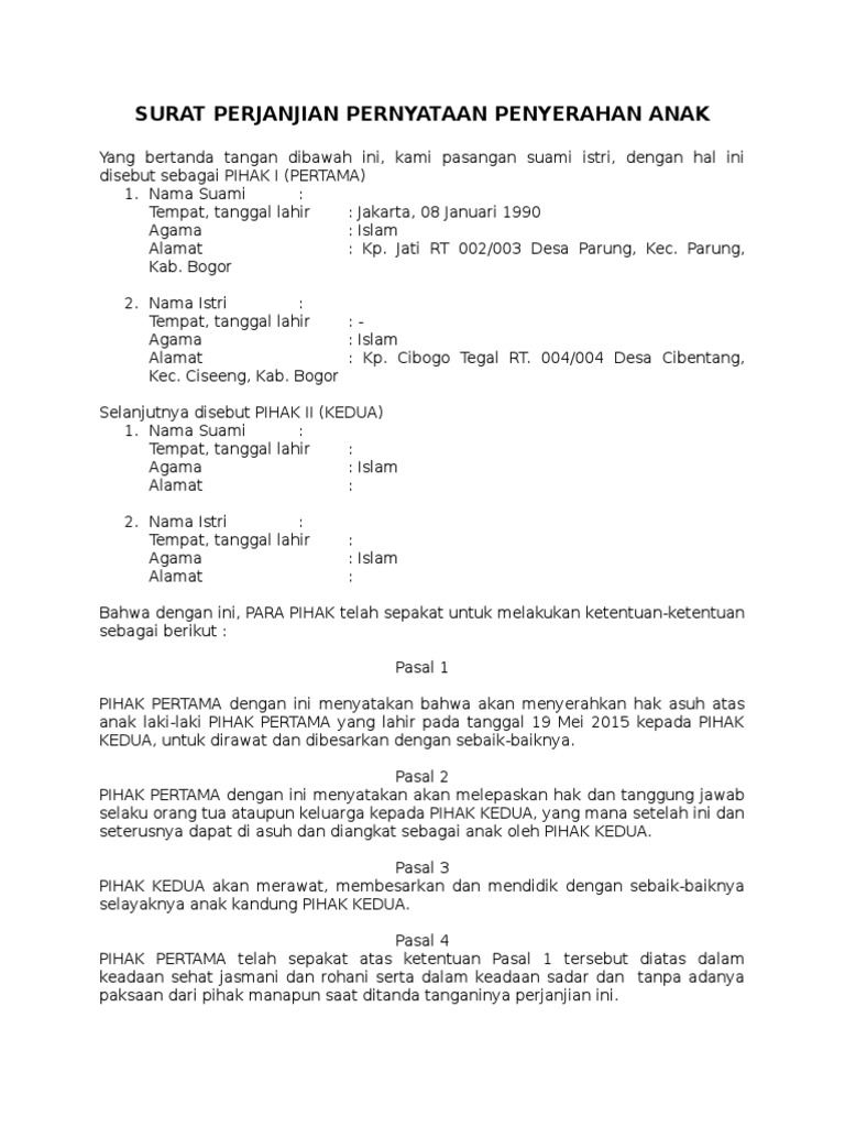 Contoh Surat Perjanjian Hak Adopsi Anak Baru Lahir Aneka Contoh Surat Yang Baik Dan Benar
