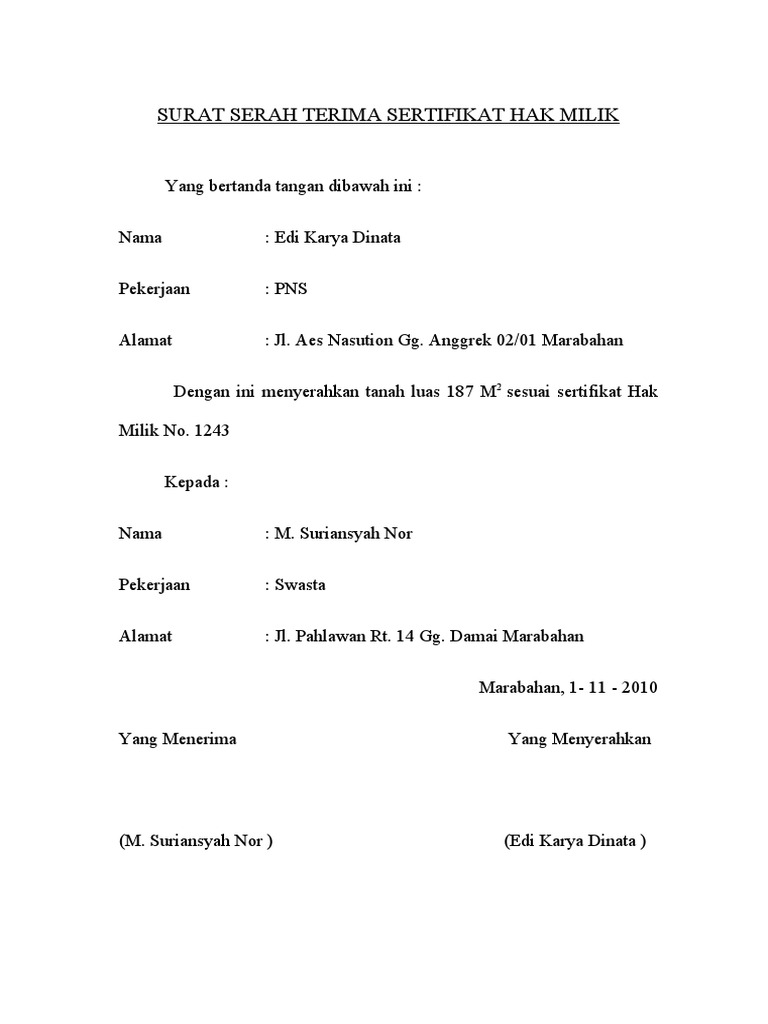 Dokumen-dokumen sekuriti lain yang anda perlu. Sedangkan untuk tunai bertahap biasanya disesuaikan dengan Perjanjian Pengikatan Jual Beli PPJB. Contoh surat serah terima barang dokumen.