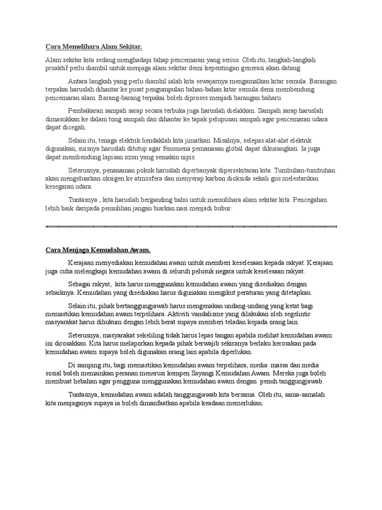 Karangan Cara Cara Menjaga Alam Sekitar Actfade
